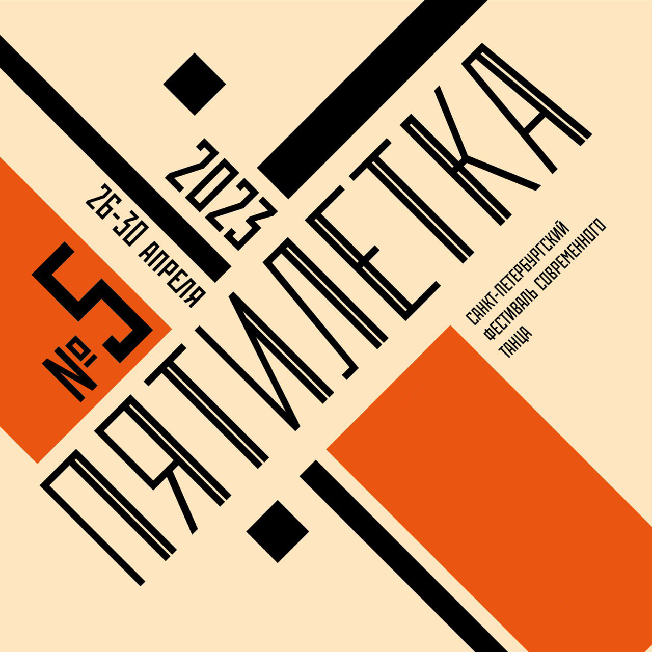 Программа «Пятилетки» включает разные форматы танцевальных событий, каждое из которых может перерасти в отдельный фестиваль. Среди них – проект Solo Soul (29 апреля), сфокусированный на сольном танцевальном высказывании, и проект «Двоеточие» (30 апреля), исследующий возможности невербального диалога. Фестиваль также станет платформой для общения учащихся творческих вузов Петербурга. Хореографы и студенты Санкт-Петербургской государственной консерватории им. Н.А. Римского-Корсакова, Академии Русского балета им. А.Я. Вагановой, Академии танца Бориса Эйфмана представят свои экспериментальные работы в рамках проекта Dance Universe (26 апреля).